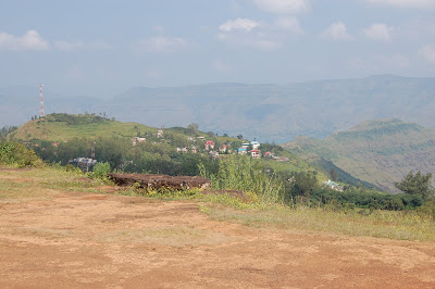 first overnight vacation since coming back from the US. It was also the first since Anaya's birth. We had planned to be out of the house by 7 am. It was 9 when we left the house. Anuradha was hungry, so we stopped at Kamat's near Dahanukar cly. for breakfast. So, essentially, we started at 10 am. I had never seen the Katraj Bypass highway which bypasses Katraj ghat and joins the NH-4 just before Khed-Shivapur. I must say, it was the most pleasant and pleasurable stretch of highway I have seen around Pune. Even the Mumbai-Pune expressway comes second to that. Once you are past Sinhgad road intersection, the road is as smooth as it is scenic. The surrounding hills were amazingly green and I really felt like it was some place other than Pune. The road also has a Viaduct in between. Once we joined the NH-4, then too it was smooth driving. Around 80 km is the exit to Wai, via the Khambatki Ghat. The Ghat is one-way, so the drive is good. We passed Wai and then there are two ghats up to